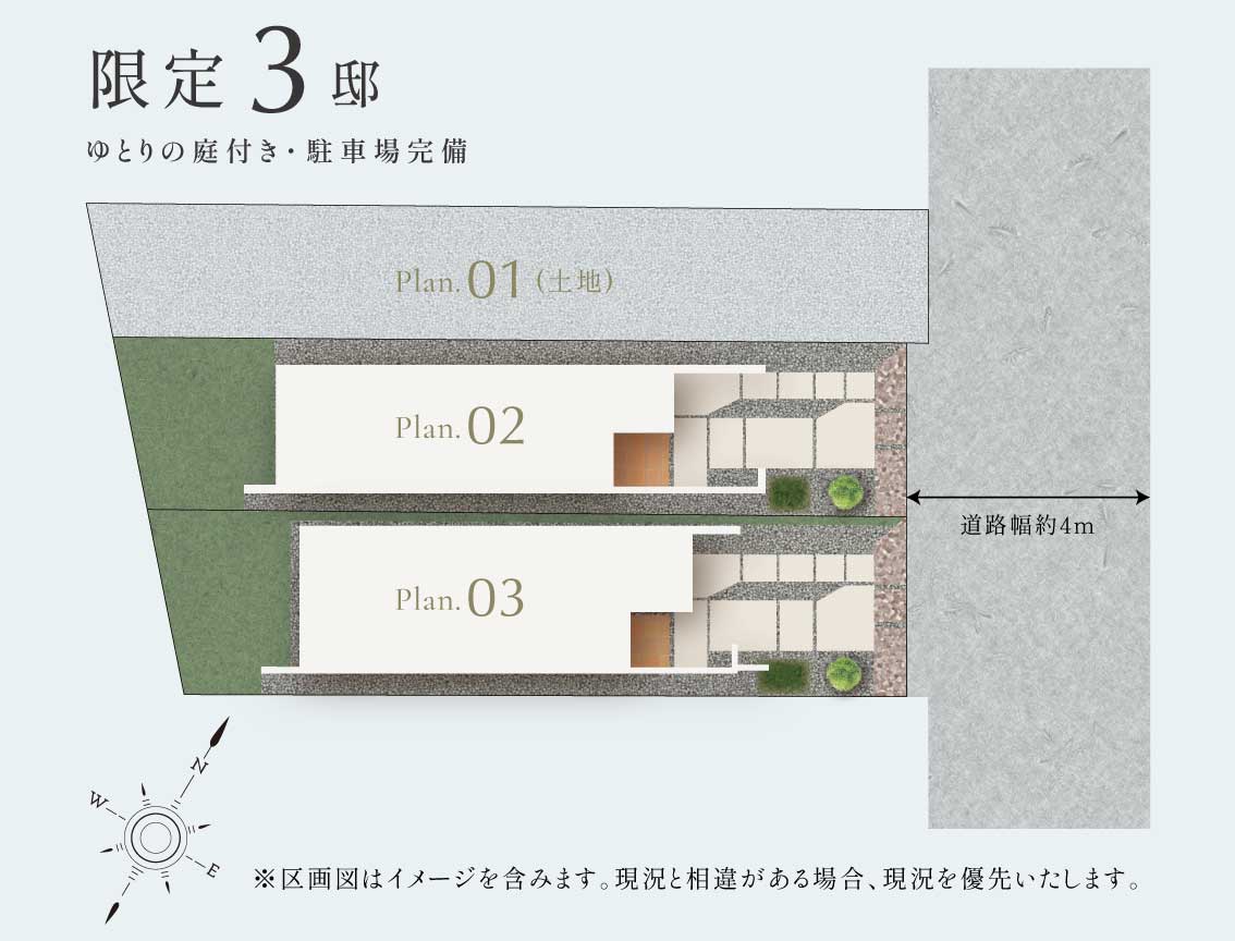 ※区画図、間取り図はイメージを含みます。現況に相違がある場合は現況を優先といたします。