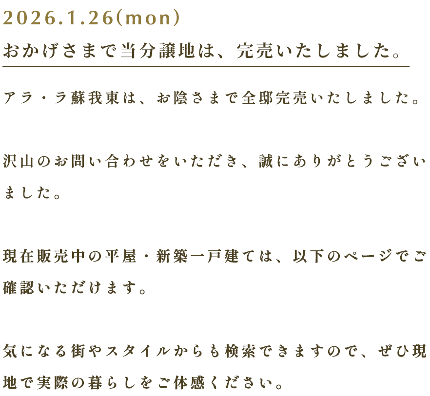 【アラ・ラ蘇我東】おかげさまで、当分譲地は完売いたしました。